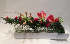 | 左の画像はフラワーデザインコースのオリジナルの作品例です。いろいろなフラワーデザインのバリエーションを学びます。 |